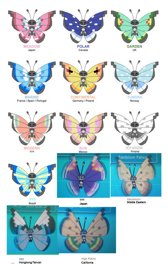 为啥同一款游戏,在游戏《口袋妖怪xy》中蝴蝶的颜色却不相同呢?!难道小编获得信息有误?不过对于收集控们来说这却是福利来了,千万不要强迫症又犯二了,以下我们一起来看看各国蝴蝶图览吧!