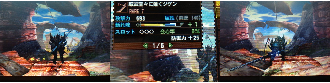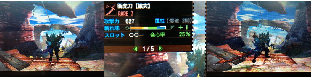 本作第一雷属性太刀,高攻高属性还附送一洞,可惜有10%负会心的存在