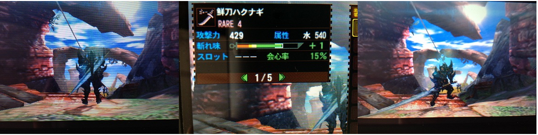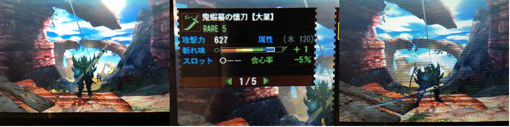 卡婊奇迹般的将冰属性太刀端上了台面,加匠后超长白斩高属性自带两洞让人喜出望外,毫无悬念的本作第一冰太。略残念的是其美型度不足。
