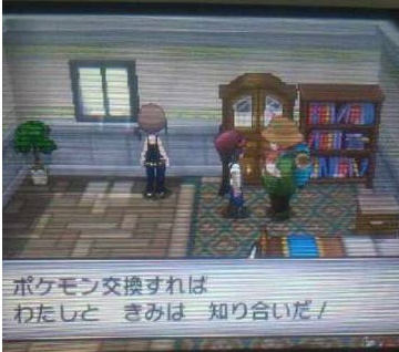 第一个道馆城市左边建筑内的山男 ,用兔子交换大葱鸭,我也顺便送上刚才自己找到。