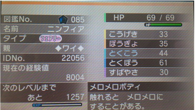 这个是尼恩菲亚的特性,メロメロボディ(媚惑身躯) - 碰到的话,有可能会被媚惑,具体怎么样的效果,大家不妨都去练一只看看。