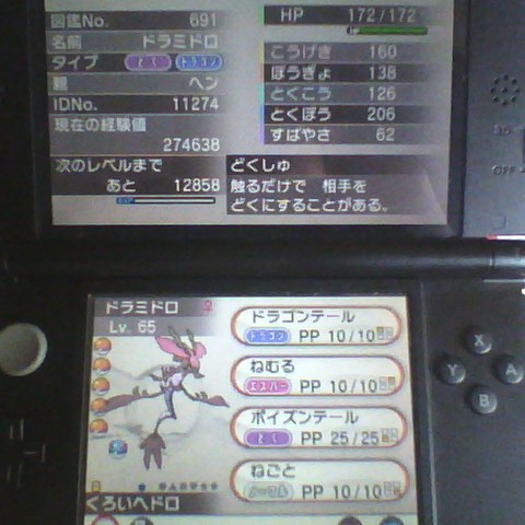 毒+龙,最高特防 之后是特攻,血有点少 ,想当盾的可考虑努力加血特防,我这支是全物攻+特防的,我X版在GTS换到了这支+攻-特攻的, 于是天真的我就去把它练全物攻了....之后.....才发现它.....是个盾.........而且连毒刺都不会.....OTZ,不过其实物理也有好处,因为毒刺特性改成了自己用近战打中对手也有机会发效果,所以龙尾也带毒了XD而且龙系抗性很不错 ,用来消耗不错用,吃除火狐以外的主角宠很轻鬆 ,不过得小心老喷龙爪 奇异花地震。