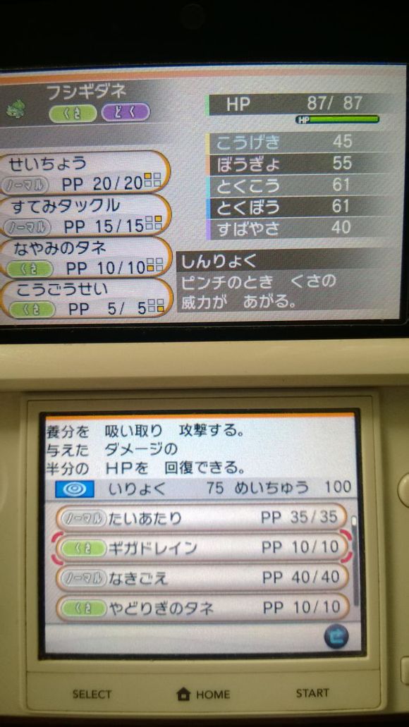 昨天孵妙蛙种子,今天在整理箱子的时候发现一只母的妙蛙没有亿万吸,想想应该是饲养员遗忘了,正好就带着这只妙蛙去技能回忆奶奶那里看看有什么其他技能,突然就发现了亿万吸居然可以回忆!起初我以为是技能列表改了,就回去拿了一只没有遗传亿万吸的妙蛙,发现无法回忆,这就确定了这一代遗传技能是可以回忆的!这下妈妈再也不用担心我的遗传技能被忘记了!