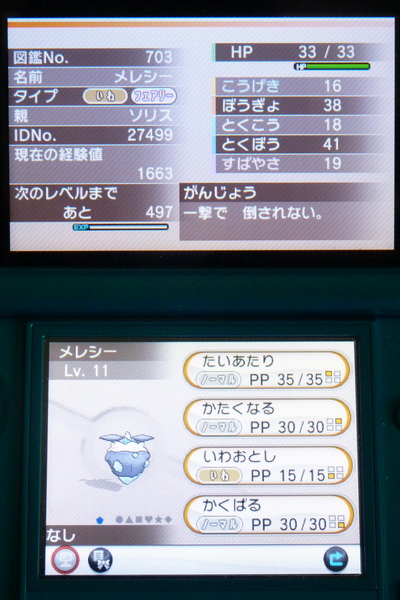 嘛 讲了那麼多 其实这一篇的重点并不是在战术上的运用,而是在於他的「坚硬」特性是梦特性 ,至於取得梦特性メレシー的唯一方法就是透过在映し身の洞窟中的群战。