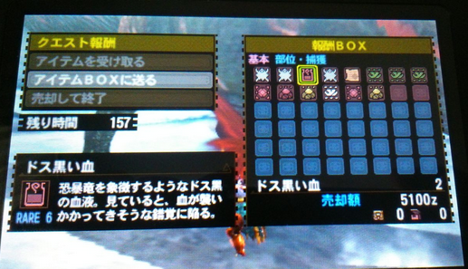 除了3G飢饿恐暴龙就有的黑血以外,这次多了个歷战の漆黑皮,即是上图中黑血左边那两样。