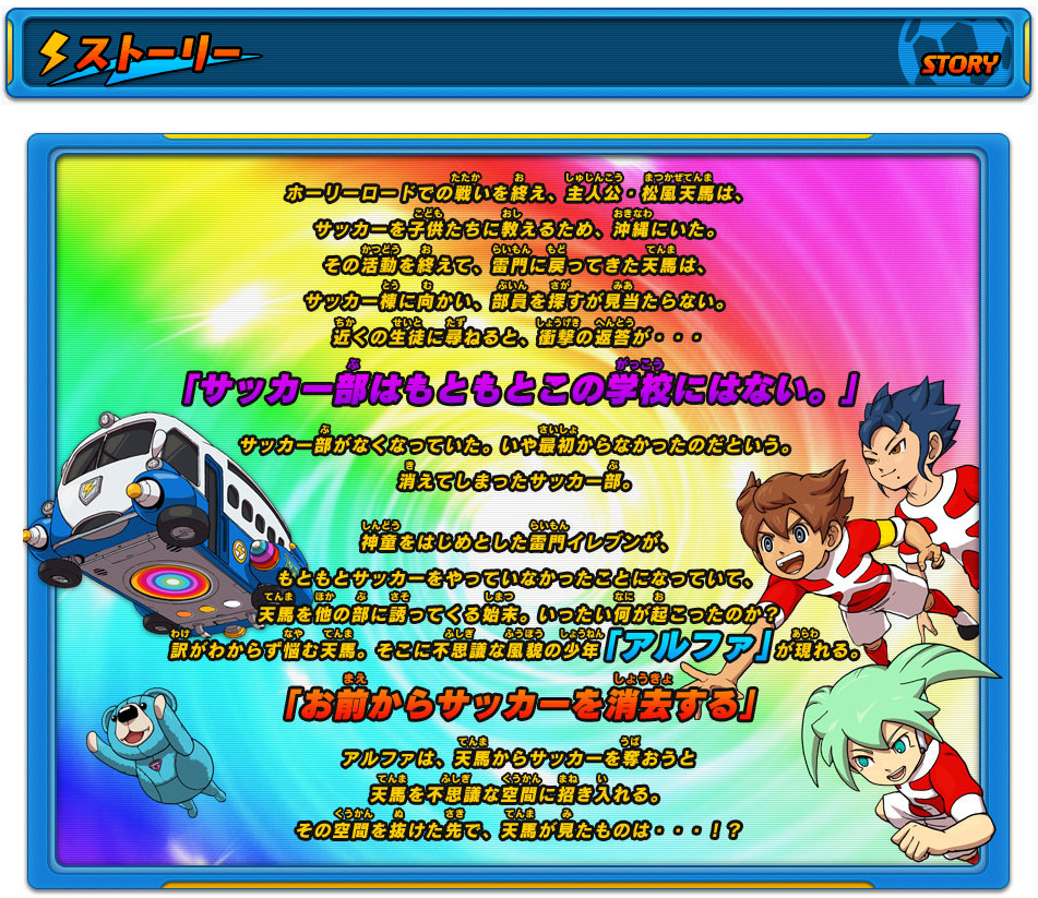 在Holy Road之战后,主人公松风天马为了教小孩子足球而来到了冲绳。