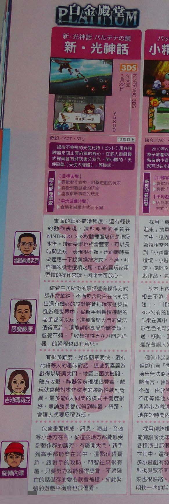 新光之神话作为樱井政博亲自操刀的作品,游戏的素质自然毋庸质疑,从FAMI通几位编辑的评分中就可以窥见一斑,成为了3DS平台上的首个满分作品,游戏的音乐制作团体也是相当的豪华。
