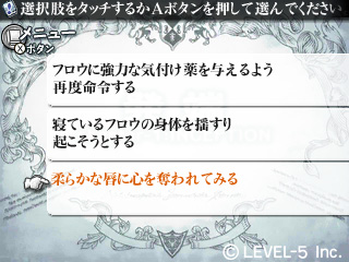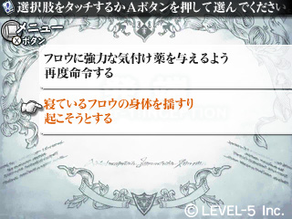 而選擇肢亦同,有著對故事產生極大影響的「骰子」。隨著故事的展開,骰子將會呈現在玩家面前。利用觸控筆將骰子握著、將未來命運交由盤中舞動的骰子。而出現的數字將會對事件產生不同的變化。