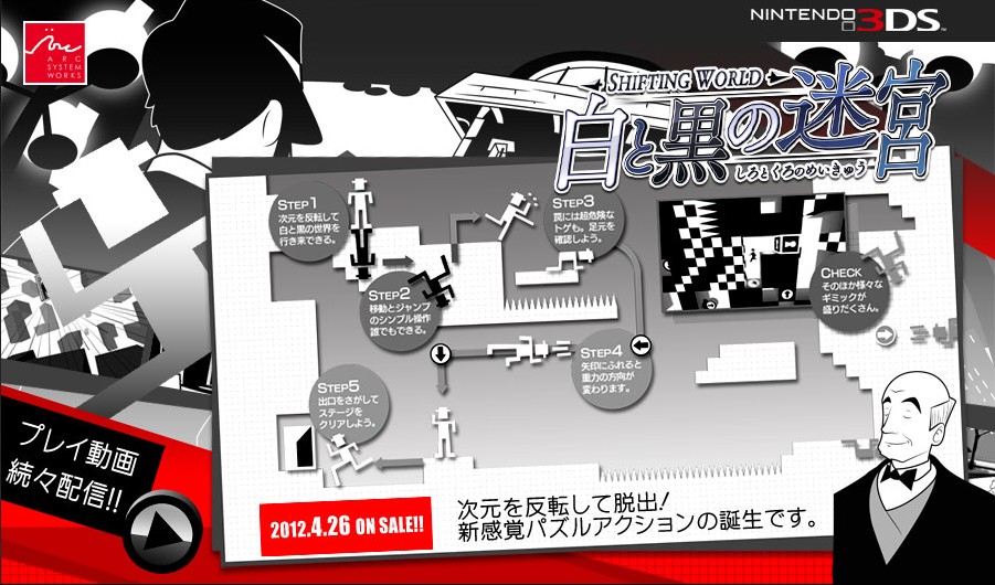 本作ARC SYSTEM出品的益智类游戏 SHIFTING系列最新作,主人公收到迷之人物杜克的神秘邀请,来到了招待状上的古老迷馆却身陷被黑与白支配的异次元空间。玩家将以白与黑的单色世界为舞台,化身为被关闭在这个世界里的主角,必须一边转色一边解谜过关。游戏预定于2012年4月26日发售,售价3990日元。