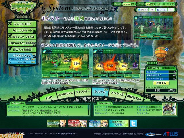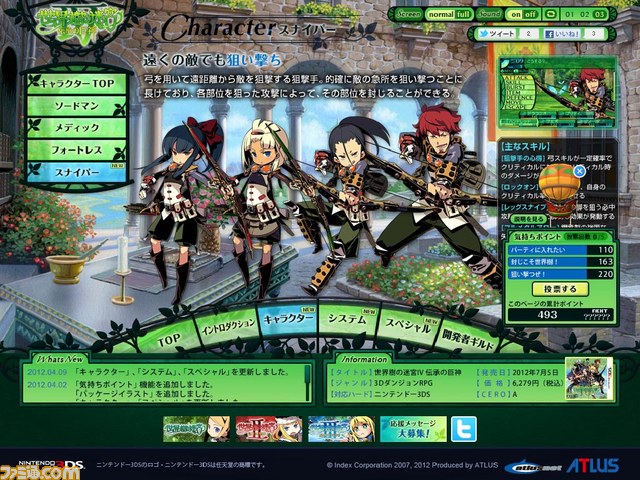 Atlus预定于2012年7月5日发售的任天堂3DS游戏《世界树迷宫IV传承巨神》的官方网站又有新角色进行更新了,角色的中“狙击手”的细节,系统中的战斗系统在twitter进行了公布。