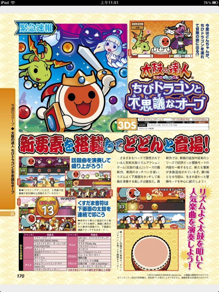 3DS《太鼓达人》杂志图公开:更多新要素加入游戏