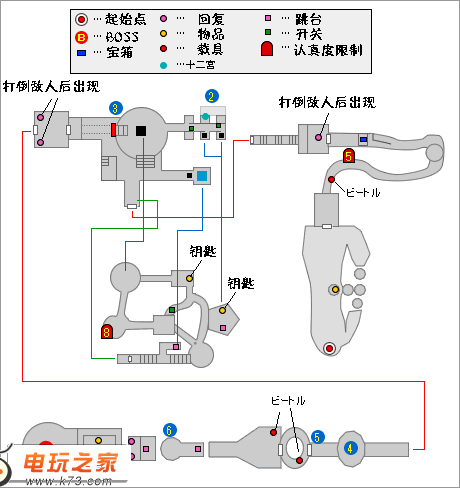 5,进入牢房③后,天使军和地下军交战,速度解决吧,通道右边有温泉(所以前面房间的食物是浮云啊)注意地板有坑,靠边走;走到中间台子上,跳进坑里,进去后立刻去打炸弹,可以直接解决掉房间里的3只怪,边上有8级门,别忘了去拿宝箱;拿钥匙,路上无盾枪兵和小天使无压力