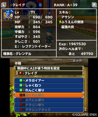 格斗场和boss战等,从一开始就根据对手的情况来事先设定好技能,会很有效。例如,与メラ系怪兽进行比赛时,事先对己方的怪兽设定为使用的メラ类的特技,不用手动下达命令也能有效的对对方的弱点发起进攻的哦! ! !