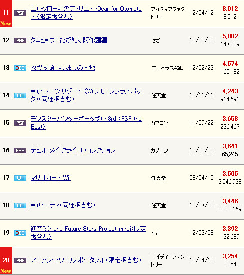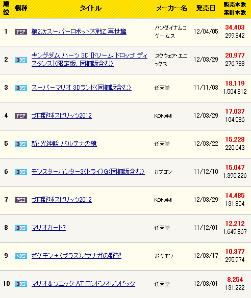 本周最新一期的FAMI通(2012.4.9-4.15)销量又来了,让我们来看看又是哪家欢喜哪家愁吧!