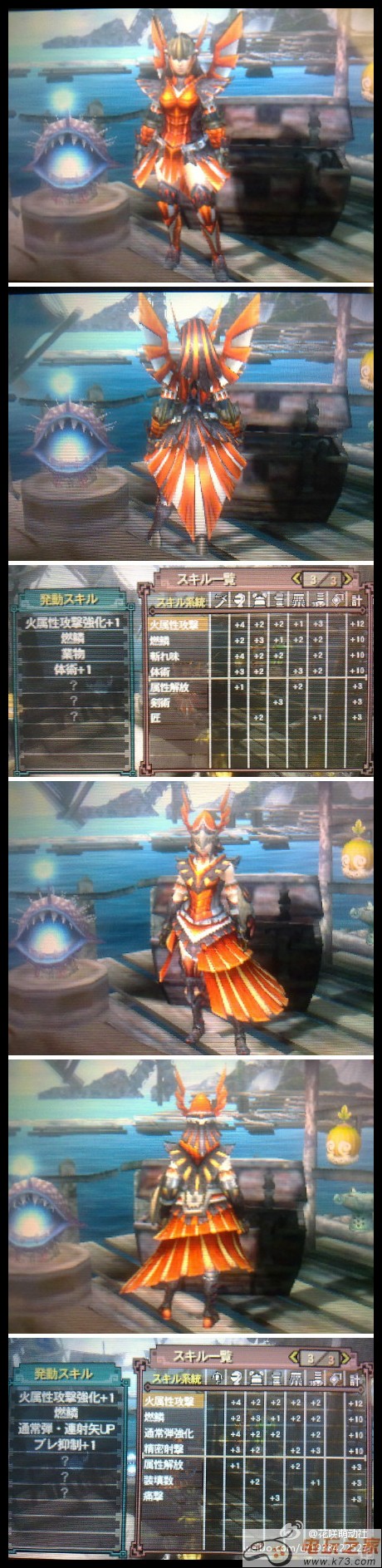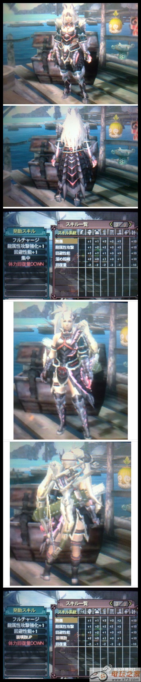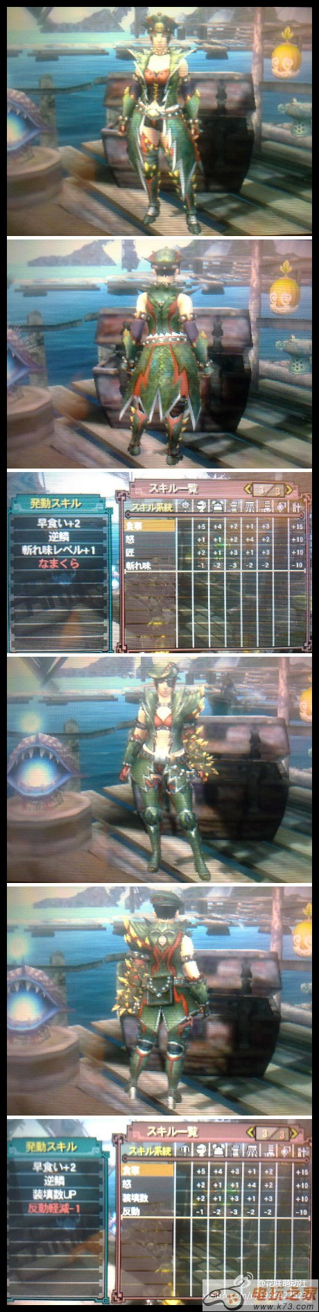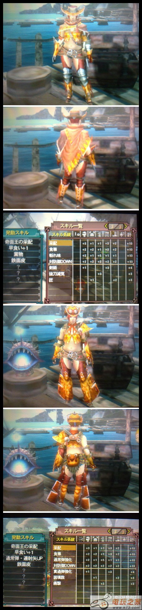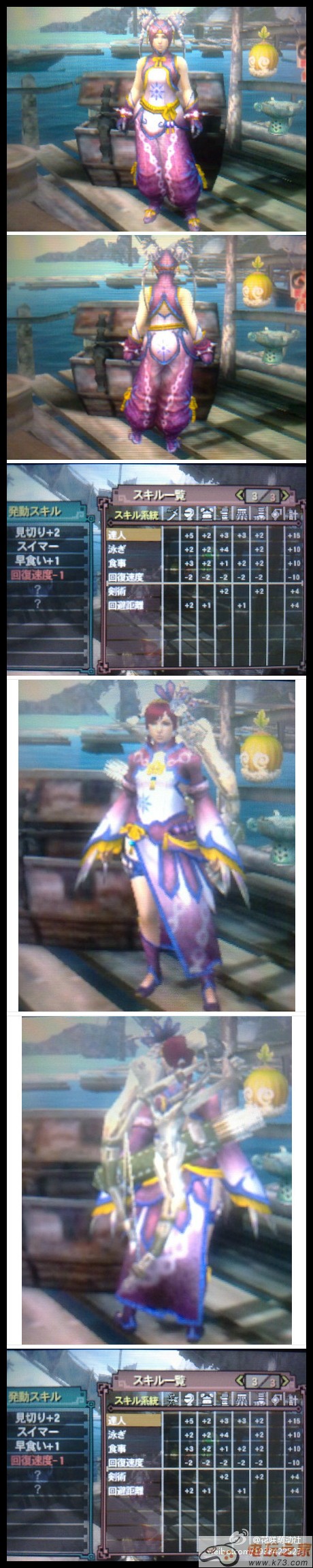 3DS平台的怪物猎人3G相比原作WII平台上加入了G级任务,而游戏中的G级套装也成为玩家追逐的对象,以下本作的所有女猎人的G级套装。