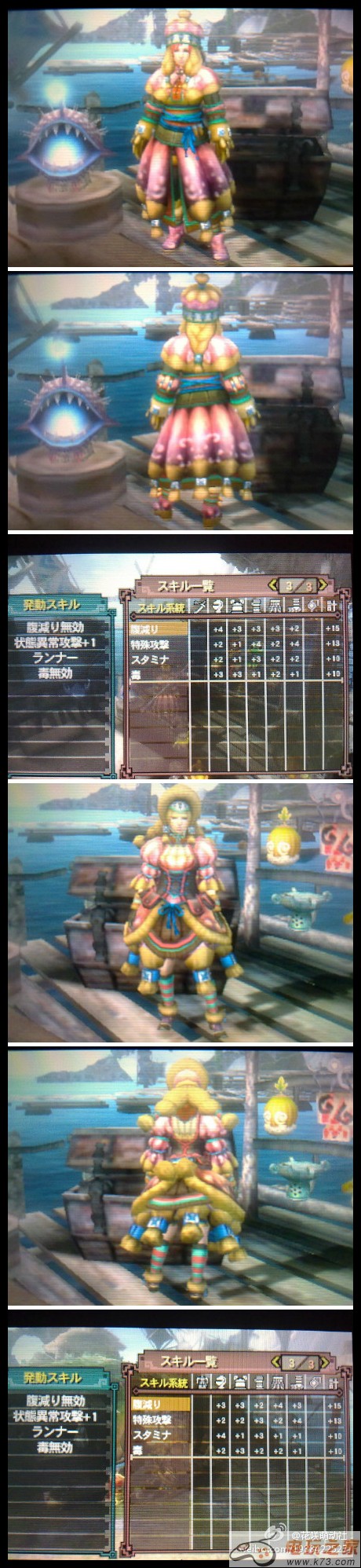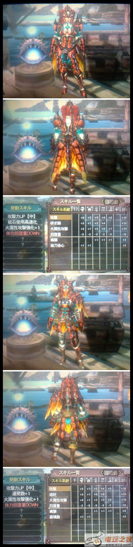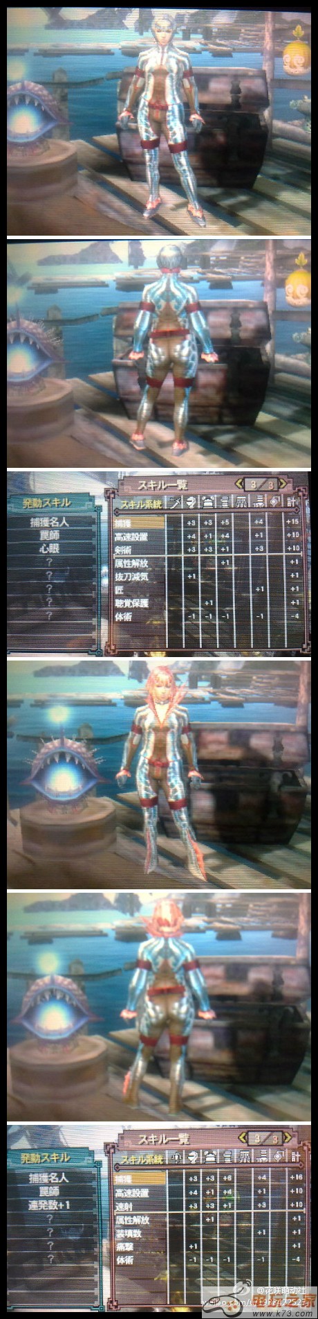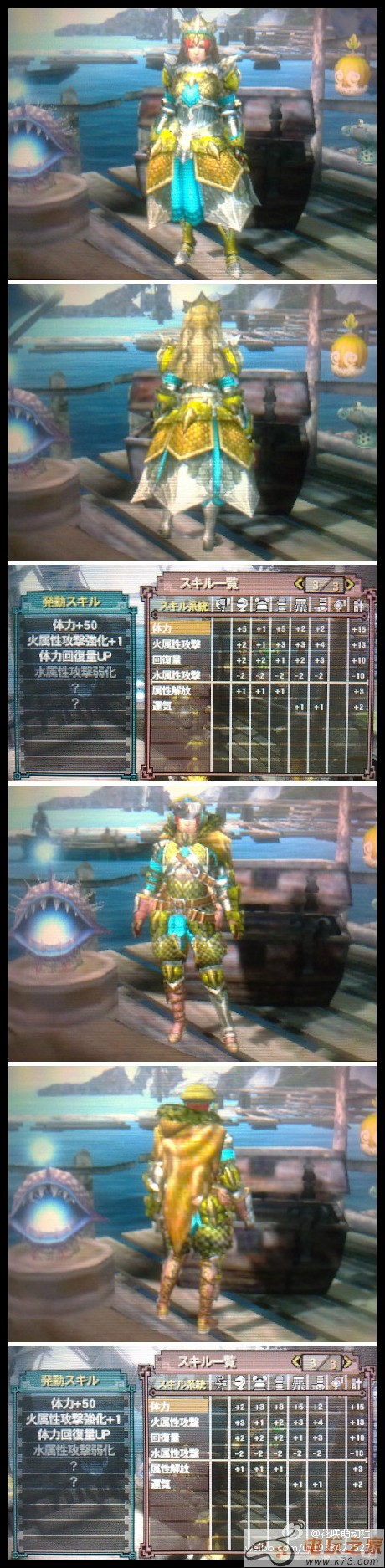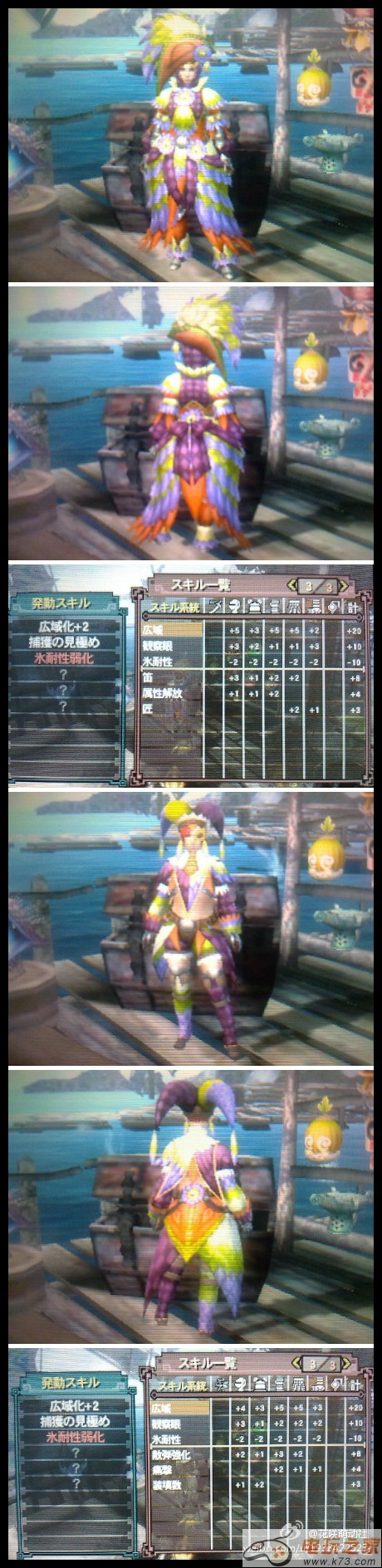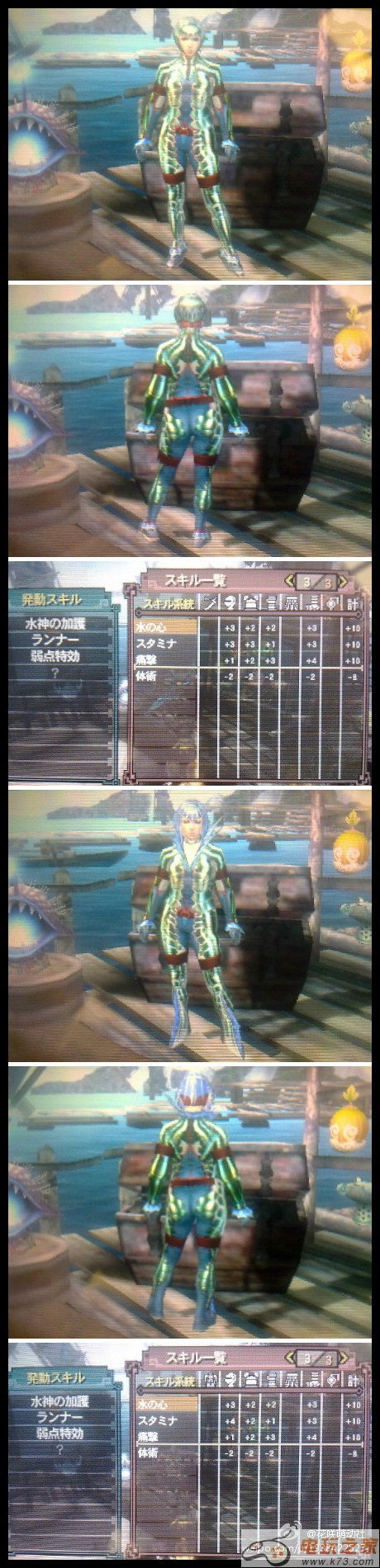 3DS平台的怪物猎人3G相比原作WII平台上加入了G级任务,而游戏中的G级套装也成为玩家追逐的对象,以下本作的所有女猎人的G级套装。