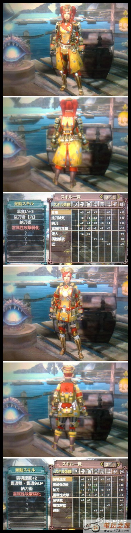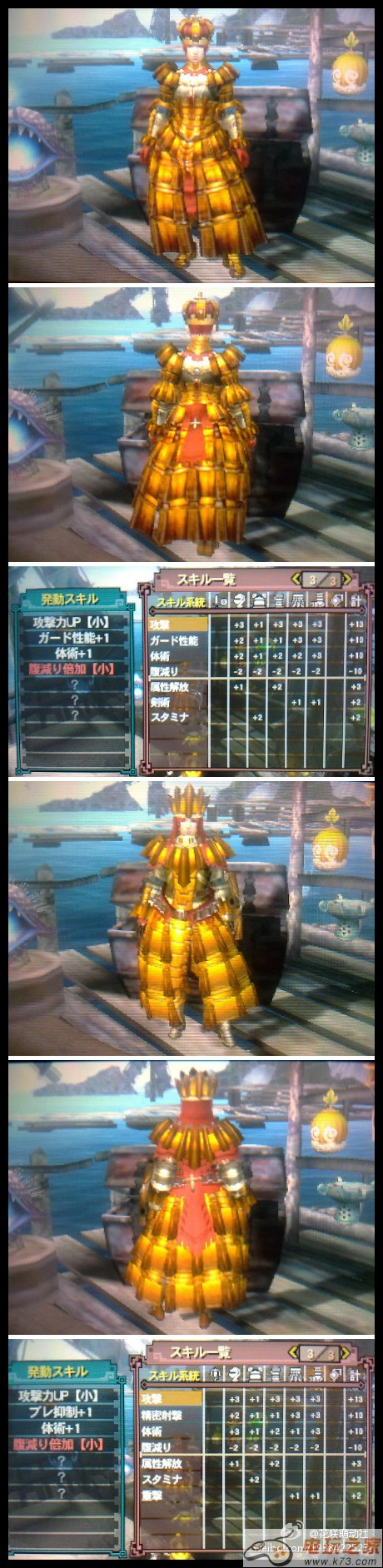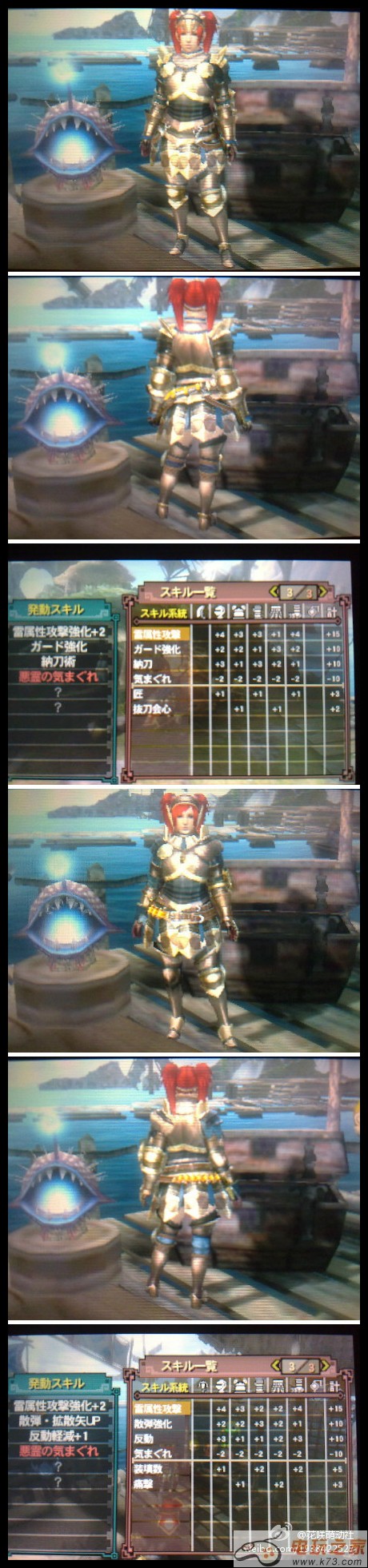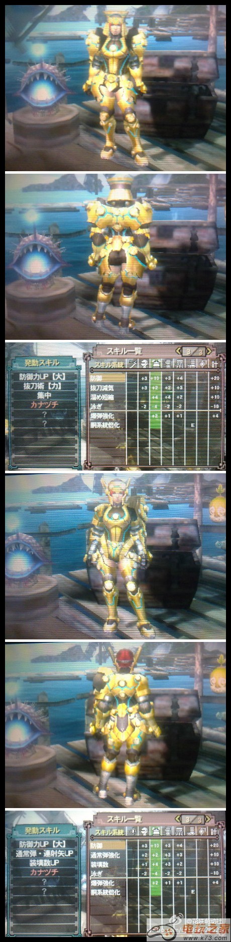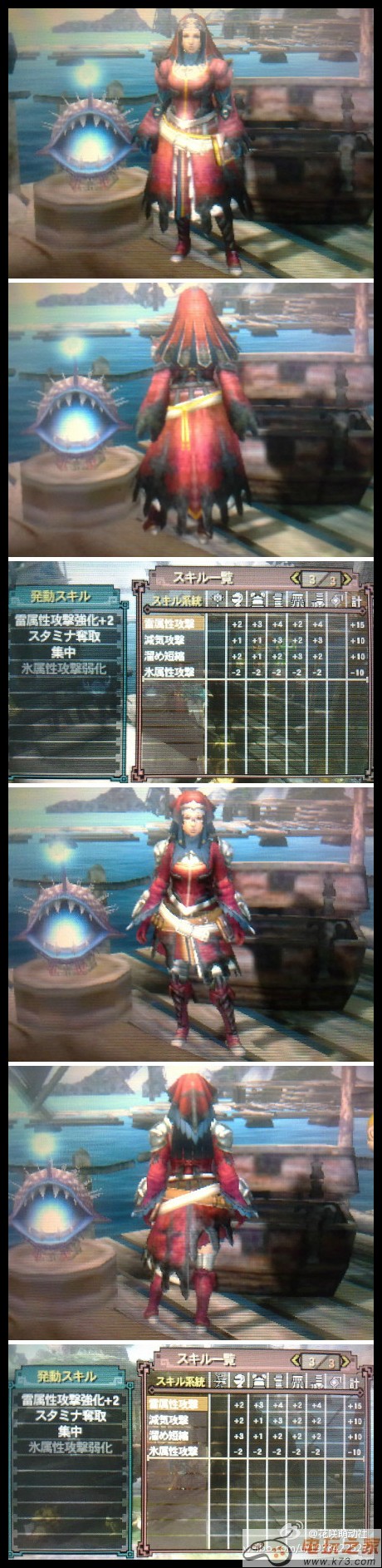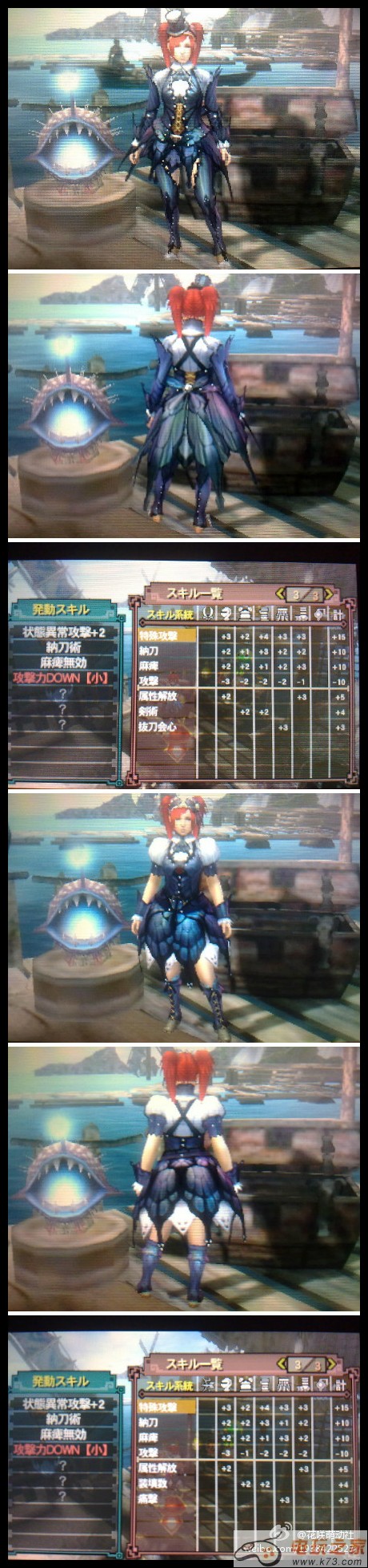 3DS平台的怪物猎人3G相比原作WII平台上加入了G级任务,而游戏中的G级套装也成为玩家追逐的对象,以下本作的所有女猎人的G级套装。