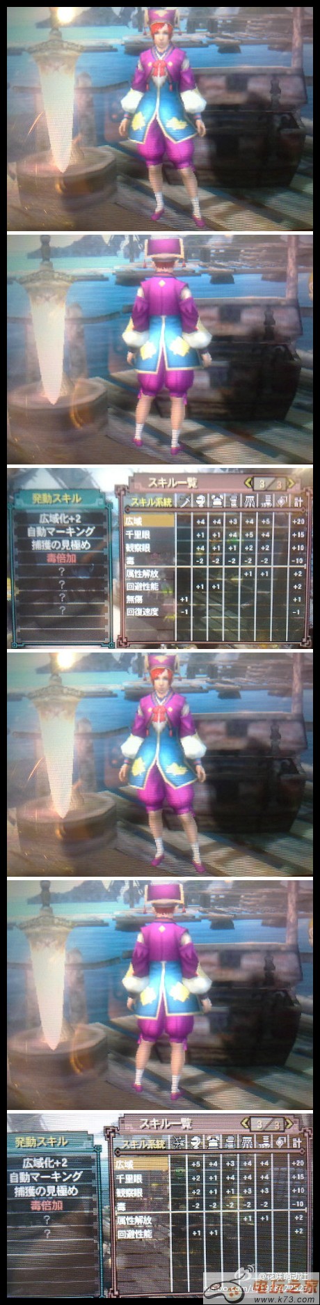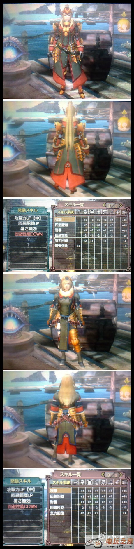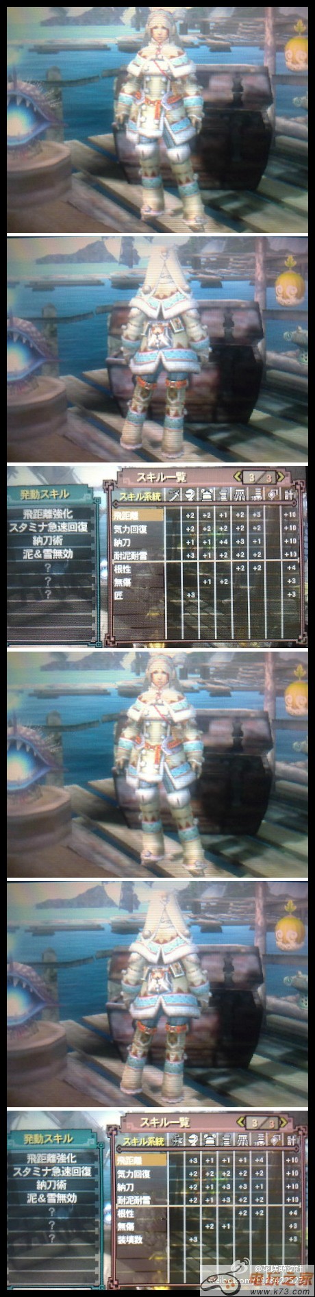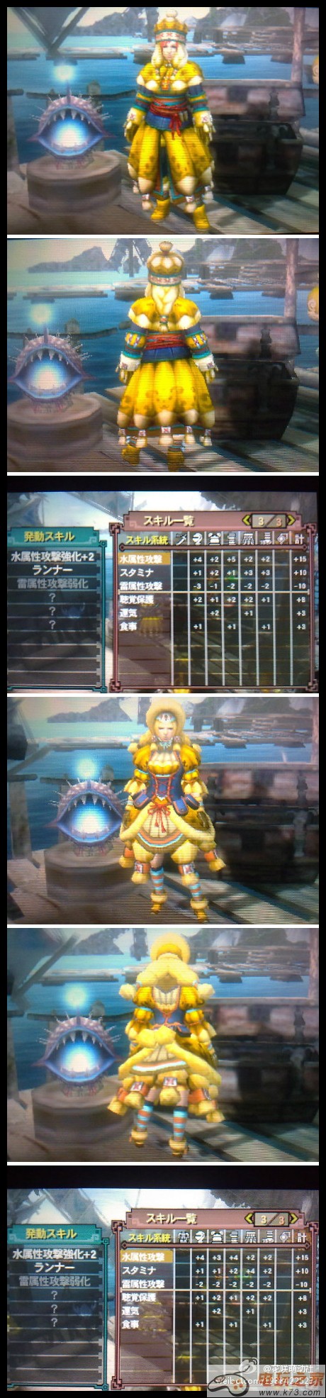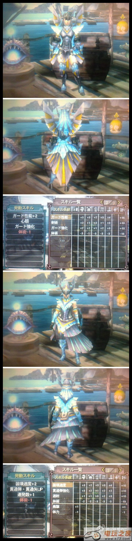 3DS平台的怪物猎人3G相比原作WII平台上加入了G级任务,而游戏中的G级套装也成为玩家追逐的对象,以下本作的所有女猎人的G级套装。