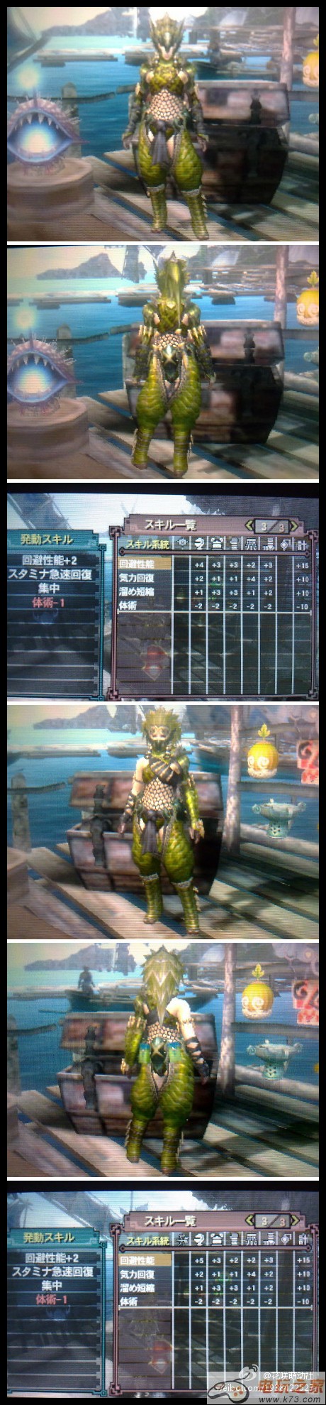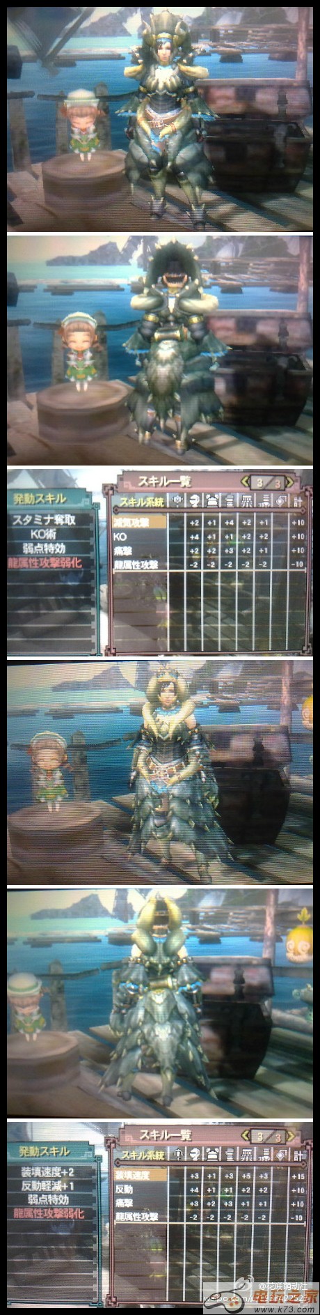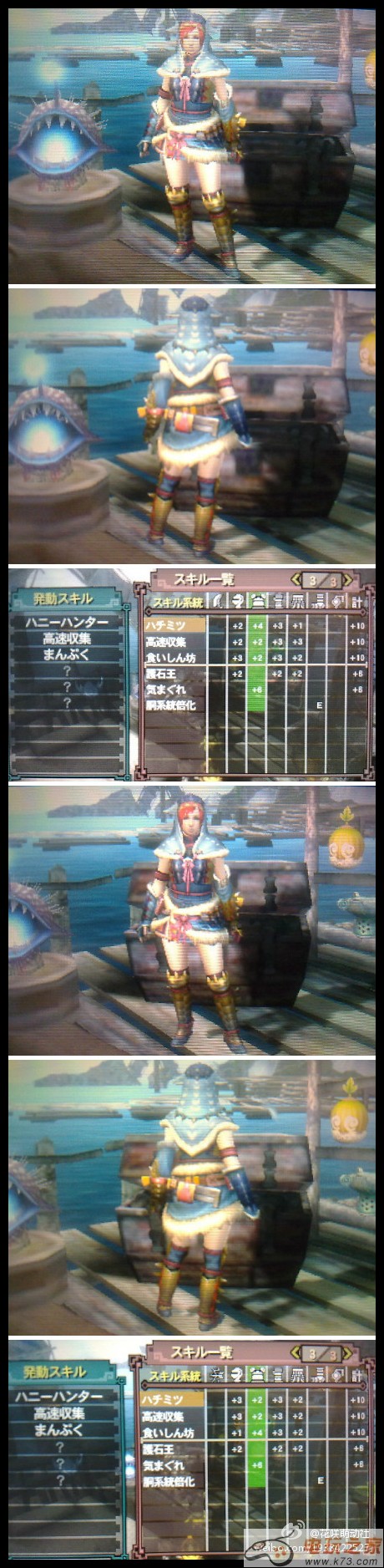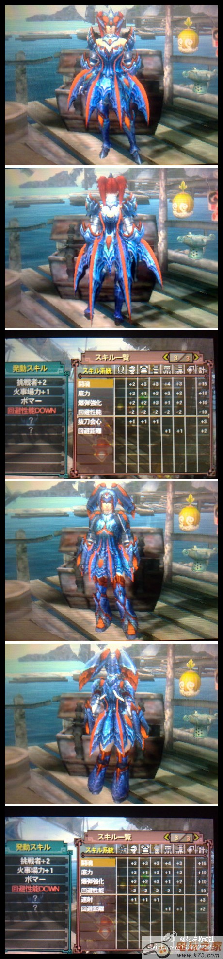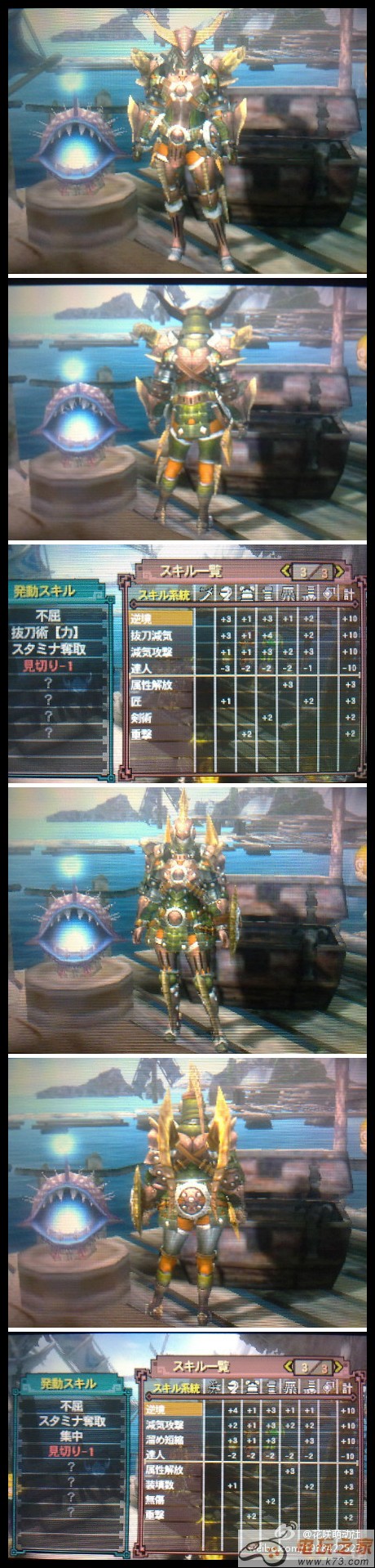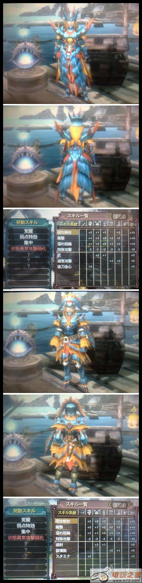 3DS平台的怪物猎人3G相比原作WII平台上加入了G级任务,而游戏中的G级套装也成为玩家追逐的对象,以下本作的所有女猎人的G级套装。