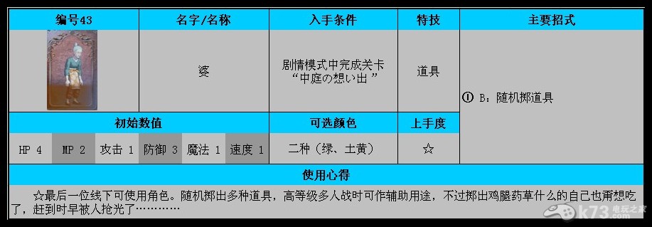 3DS《公主法典》中存在非常多的角色可供玩家选择通关,本攻略中介绍了全部43名角色的心得,能力,招式,以及连续击详情,希望对你的游戏产生帮助。