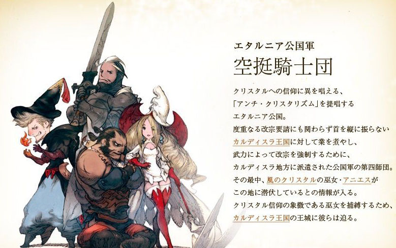 由队长-骑士阿尔真特?海格尔所带领的空挺骑士团,是与水晶正教对立的艾达尔尼亚公国所属的骑士团。