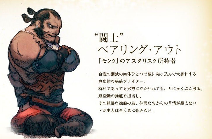 是飞空艇中的操舵手,由于粗暴的操控船只,让同伴们叫苦连天,但本人十分的不在意。