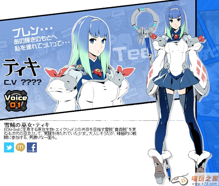 目指与在“EDN-3rd”栖息的原住生物“艾依库利特”共存的雪贼“贵森贼”,蒂姬就是被其束缚的次代巫女,同时也等待着觉醒。很成熟,很积极的参加战斗,有巾帼不让须眉的一面。
