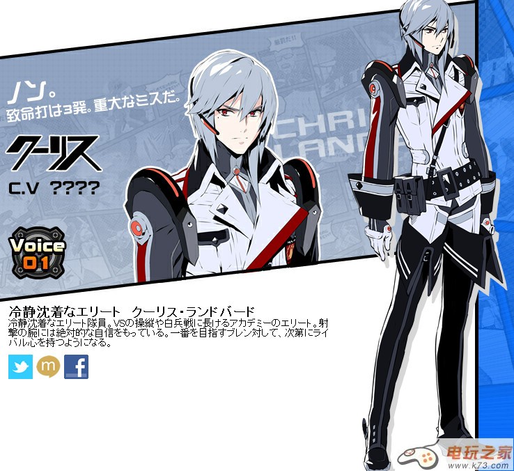 冷静沉着的精英队员。擅长VS操控和肉搏战的学院精英,对射击很有自信。对于要成为第一的布雷,渐渐生出比较的心态。