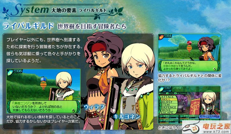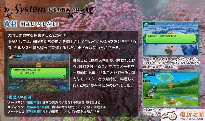 日前,ATLUS《世界树迷宫4传承的巨神》官网再次进行了更新,对本作的新要素进行了介绍,大地的要素中的食材、目指世界树的其他冒险者、秘宝情报以及特殊的F.O.E均进行了公开,下面让我们来看看详细的报道吧!