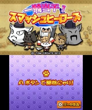 于2012 年5月30日TOM CREATE公开了3DS 游戏《一骑当千粉碎之英雄》将于6月6日在任天堂 e 商店开始发售,本作只要用一颗按钮就可以轻松的将敌人全部击飞,是满溢爽快感的动作游戏。官方网页同时也公开了影片,敌方猫武士们被击飞的可爱模样不看可惜哦。
