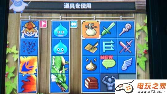 利用3DS上下屏的特性,将怪兽信息地图以及战斗移动都分开表示,玩家可以很方便的得知自己想知道信息,菜单的设定沿用了DQMJ2的部分设定,怪兽不再像初代DQM无视怪物大小,这里需要占用格子摆放怪兽,更加具有战术性。补充一点,每个迷宫都是随机生成,所以天气的变化十分明显,白昼交替很有代入感,例如沙漠的风暴,草原明媚的阳光和雨点...另外迷宫内的下层出口全部由原来的旋窝变成井,跳入之后不再有画面扭曲的表现手法了。