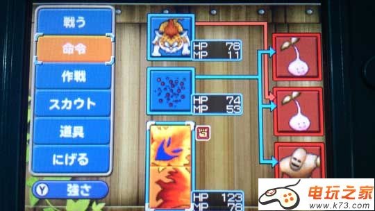 战斗系统:脱离了原版中怪物不占位置的设定,取而代之的是格子要素,根据怪物的体积来占用出战空间,本作最大可以携带八名怪兽,当然是体积只占一格的怪物。分为两个空间,首发和替补,战斗中按Y可以随时切换队员,根据怪物的特点进行战术安排,对敌人进行有效的打击!下屏的战斗选项更加直观的显示给玩家,攻击线路一目了然。