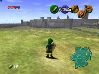 依依不舍地告别了SariaMM之后,在洞口的树林中遇见了一位奇怪的猫头鹰大叔,它告诉LINK,那位公主就在前方的Hyrule Castle(海拉鲁城堡)之中,并且告诉了他一些地图的用法,之后就飞走了。LINK也没多想他为什么会知道自己,立即打开地图来查看,原来城堡就在Hyrule Field(海拉鲁平原)的正北方。