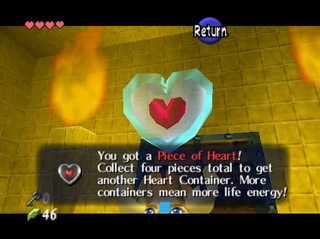 3.在Treasure Box Shop(宝箱游戏店,仅在晚上开放) ,10Rupees玩一次,店主给你一把小钥匙,打开前面的门,然后从两个宝箱中挑一个,如果是钥匙就继续前进,一共六道门,只要错一次就只能退回去重来了。绝对考验RP的游戏,不过获胜的报酬也是很诱人的,能够得到一块Piece of Heart(心之碎片)!集齐4块碎片便能增加HP上限一格。同样,第二次走完全程的只能得到50Rupees了。