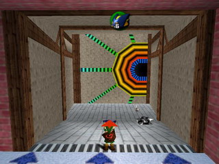 那么事不宜迟,Temple of Time(时之神殿)位于Market(市场)的右上角,从面具店右边的路就能达到了。最后再看一眼现在这个世界吧。市场中的小店又有一些更新,首先在夜晚,在靠近Back alley的一间店铺,Bombchu Bowling alley(炸弹鼠保龄馆),现在终于开业了。花30元可以玩里面的小游戏。