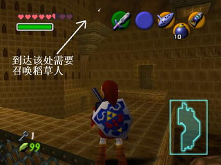 稻草人之歌的乱入说明:要学的稻草人之歌,首先返回少年时期,在海拉尔湖的湖畔和稻草人对话,拿出笛子后它会叫你自创一个8音符的曲子,然后再回到成年时期,再去湖畔和它对话,确认曲子后就能再迷宫中召唤出来了。