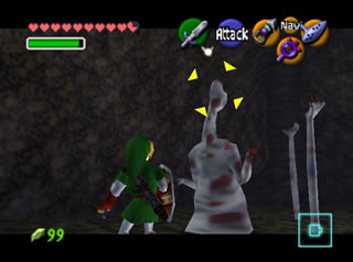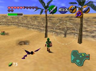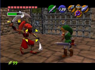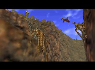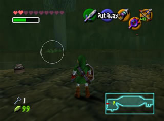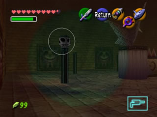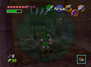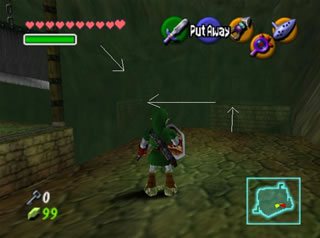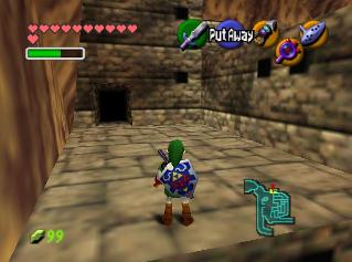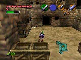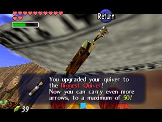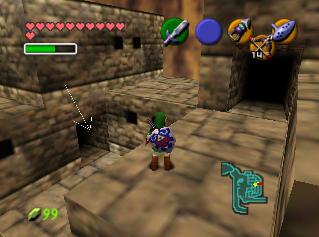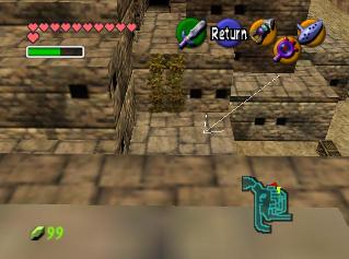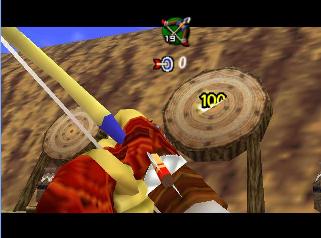 全部救完后,回有一个女盗贼和你对话,她看样子十分钦佩你,会告诉你一些关于魂之神殿的信息,然后给你一张Gerudo’s membership casd(会员卡?),这样你就能在要塞中畅通无阻了。这个地方有个Gerudo Training Ground (格鲁德试练场),位于一层中有个栅栏围着的门里,花10卢比就可以进入了,不过现在进入也没用,因为有些解迷用的道具还没拿到。旁边有条路通往射箭场,可以玩一个骑马射箭的minigame。首先把爱马epona召唤过来,骑在马背上和那个穿白衣的女贼对话,花20ruppe可以玩一次,玩法是骑在马上(废话),在马跑动的时候按B键射箭,一共20根箭,射完或者跑一圈为止。有靶子和罐子,其中靶子可以反复射,而罐子只能射一次。射中靶心是100分,靠外一些是60,最外层是30分,罐子固定100分。第一次玩的话最高分是1000分,奖励品是心之碎片。取得后再对话,最高分变成1500分,而奖励品是Biggest Quiver(大箭袋),可以装满到最高的50根箭!这个minigame堪称是OOT中最难的小游戏之一了,尤其是取大箭袋,1500分的话必须保证射中至少十次左右的100分,这个是比较困难的,不过也是花钱的好去处~