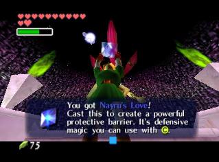 首先去右边炸开裂缝可以看到大精灵之泉,得到魔法石Nayru’s love(娜茹之爱)。