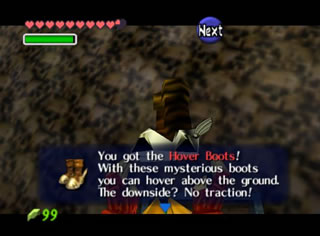 首先在B1层的区域1处,用一个绳勾过了深坑之后,前面貌似是没有路,然是使用真实之镜就能看清前方的道路了。来到一个比较大的房间。先不管中间的转盘,用真实镜子可以看到周围墙壁有个是假的,有一扇门,开门后来到区域2,这个区域只能通过真实之镜来观察路的方向。进入区域3,打败一个僵尸和2个蝙蝠后,得到地图,来到区域4,又是那个在井下的小BOSS,打法没有变化,就是手臂多了一些。打败后就得到了本迷宫的关键道具:(hover boot)悬浮靴