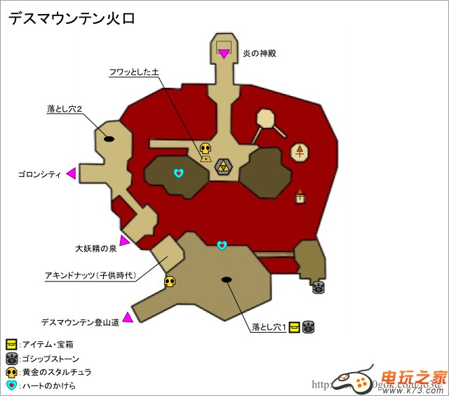 塞尔达传说时之笛3D中的迷宫相当的丰富,难度也非常之高,对于一些路痴的童鞋来说,一张迷宫地图是非常有必要的。另外,迷宫中也存在着大量的宝物,稀有道具哟!心之碎片和金色蜘蛛就是其中的一部分。下面本作中全部迷宫城镇设施的图片攻略及相对应的道具物品