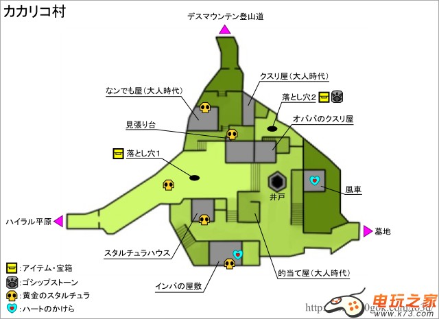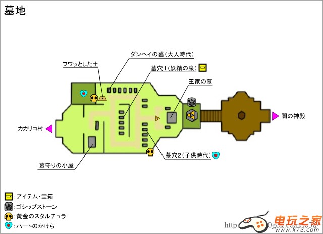 塞尔达传说时之笛3D中的迷宫相当的丰富,难度也非常之高,对于一些路痴的童鞋来说,一张迷宫地图是非常有必要的。另外,迷宫中也存在着大量的宝物,稀有道具哟!心之碎片和金色蜘蛛就是其中的一部分。下面本作中全部迷宫城镇设施的图片攻略及相对应的道具物品。