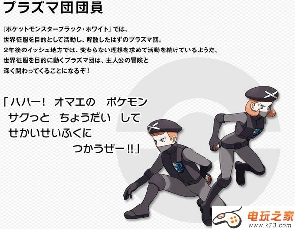 前作中以征服世界为目标而活动,但后来解散的等离子团。在两年后的伊修地方仍然追求同样的目标活动着。而妄想征服世界的等离子团,与主人公的冒险之旅有很大关系哦!
