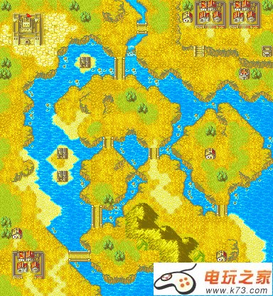 这次可求稳了,乖乖从桥往右边走。事先说明,这一章一定要让骑士ノア(挪亚)和游牧民スー(丝)出场。在大雾弥漫的战场里,如果有火把的话,使用就会点亮一大片地区,非常方便。当然,第七章得到的トーチ杖(火炬之杖)也有同等的功效。