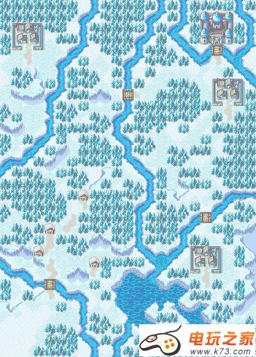 由于地形都是林地,恐怕是不好行走了,敌人魔法单位不少,レスト杖(解咒杖)总要准备一些,还是要带些受地形限制少的单位上场比较好。正是战场如名凍てつく河啊!由于河道冷冻住了,所以可以直接走过去,那些陆行的单位也没问题了。现在我们就是要抢时间,先去村庄访问!自然,敌人也不会任我们随意的,在右上方,不仅敌人剑士部队已经下来了,上方的飞马部队也蠢蠢欲动,加上投石器的远程攻击,一时是压的我方没有办法!不能慌乱,看来只有先慢慢把剑士们消灭了,再看准机会将投石器也摧毁!飞行单位最好派右边去,尽可能把那里的飞龙解决,当然,即使你不动,他们也不会放过你!