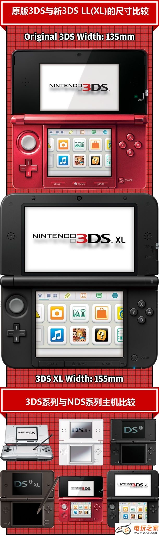 在前些天的任天堂网络直播会上任天堂公布了其3DS的改良主机日版3DSLL及美版3DSXL,那么改良版主机与3DS首发机型到底有哪些差别呢?下面就随小编一起来看看吧!