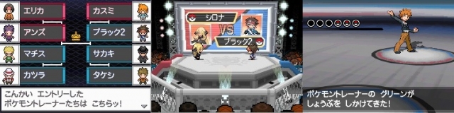 对战方式可选单打、双打、三打与轮盘战,由於参战者几乎都是专攻单一属性的道馆馆主,如果组出来的阵容不够面面俱到,很容易陷入苦战呢。另外也可以选择随机队伍战,由电脑抽选六只神奇宝贝供玩家挑选,此种赛制面对的对手,用的似乎也不是自己惯用的类型。