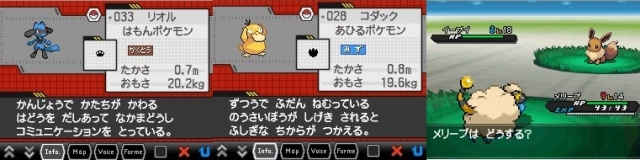 尤其一开始就能收服到相当多样的神奇宝贝,如抵达第一道馆前就有水系的露力丽、可以学超能力系招式的可达鸭、格斗系的利欧路、雷系的咩利羊等,稍後又有火系且可学到龙属系招式的卡蒂狗。在游戏初期不靠初始的三只神奇宝贝与连线交换,就能完成应付大多数状况的阵容,可说是前所未有的情况。
