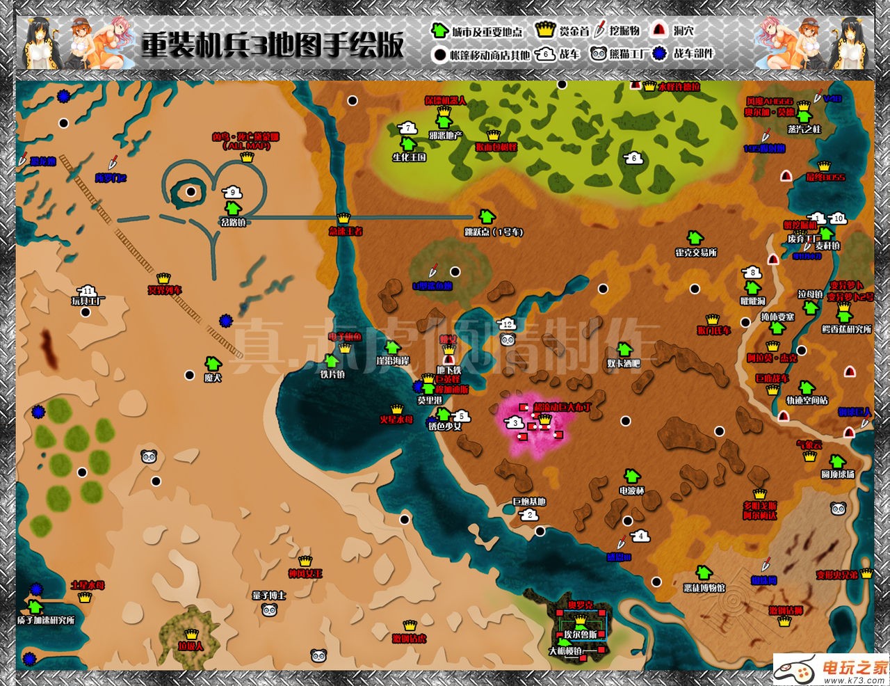 重装机兵3世界地图【全】标明村庄战车地洞赏金首boss等