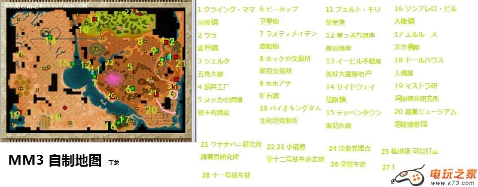 相信很多玩家都想在重装机兵3的游戏中拥有一张详细的的世界地图吧!这样不管到了哪里都会心里有底,不再会为旅途中没有装甲片或者不知道传真到哪个城镇而烦恼,下面是本站整理出来的MM3中全部世界地图,缩短你在游戏中的走路时间。