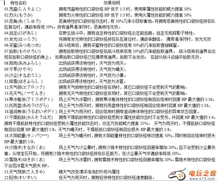 属性那里作了简单的颜色处理,黑白2中如果没有加入新的技能应该就全,不过听说冰龙的两种形态有新技能,不知道有没有..